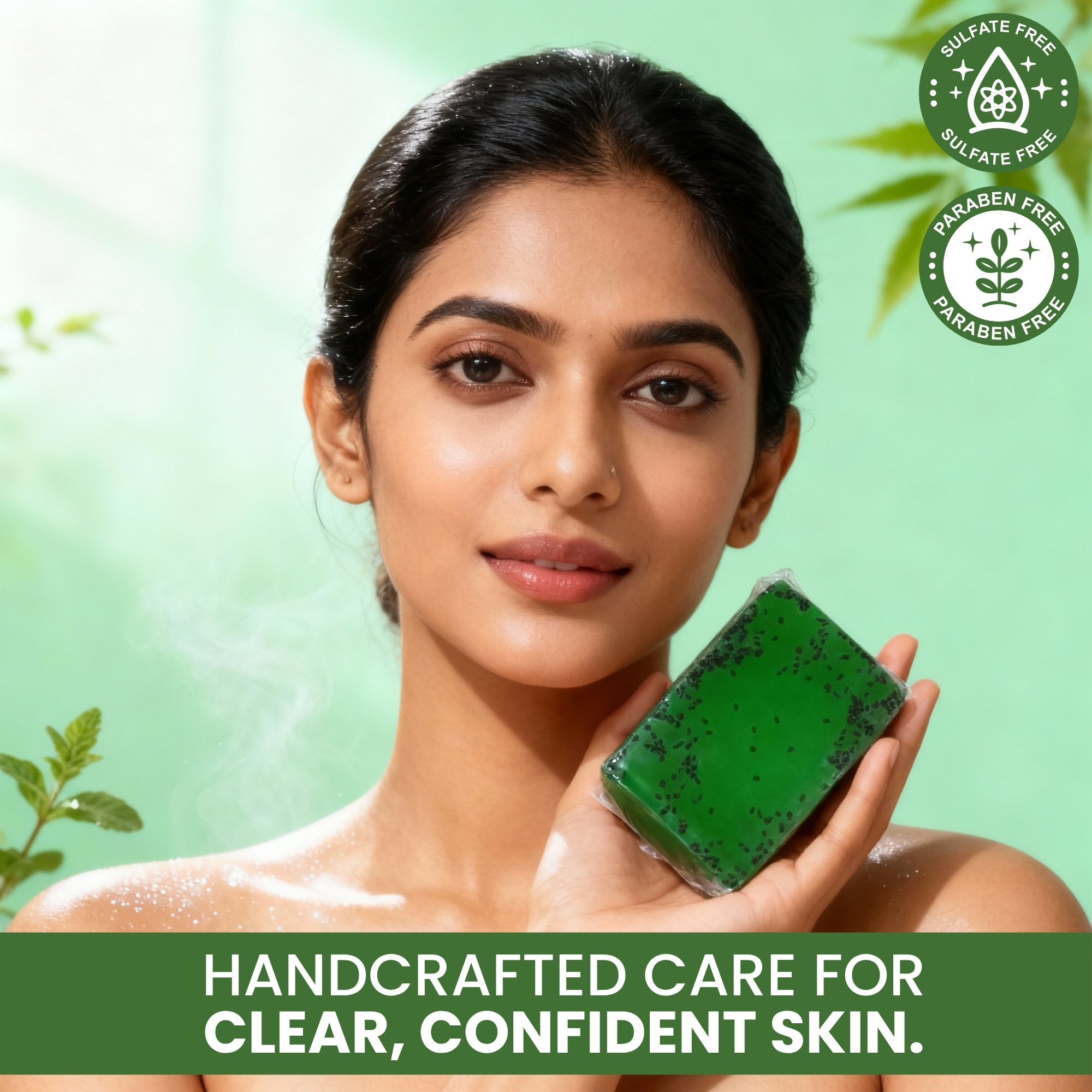 Lather: Rub the bar between wet palms to create a rich, herbal lather (you’ll feel the gentle Tulsi seeds).
